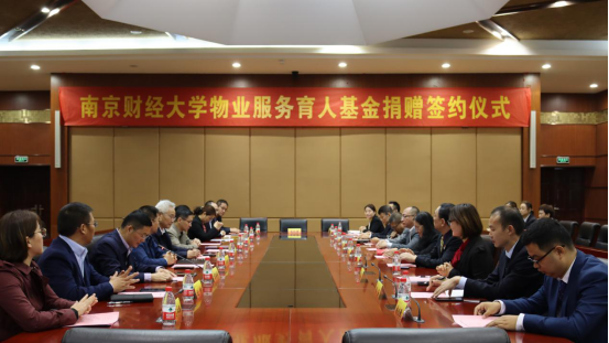 捐赠方企业代表先后介绍了物业公司的主要发展情况,通过此次物业服务育人基金的捐赠,表达对学校的祝福与对育人工作的支持,体现了物业公司服务师生与关注教育事业发展的理念,并期待能继续为学校的建设发展作出更大贡献。