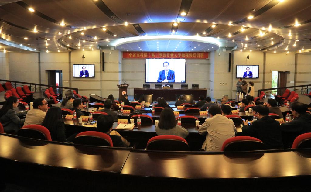 为深入学习贯彻习近平新时代中国特色社会主义思想和党的十九大精神,扎实推进学院党建工作质量提升,根据省委教育工委关于举办全省高校院(系)党政负责人专题视频培训班的要求,11月10日,bat365在仙林校区行政楼二楼报告厅设分会场组织收看专题视频培训。全体学院党政负责人参加培训。
