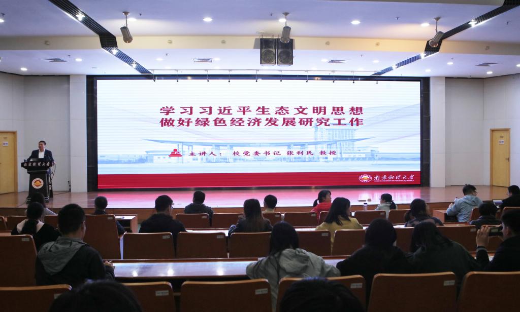 为深入学习贯彻党的十九届五中全会精神和全国研究生教育会议精神,11月13日下午,校党委书记张利民在仙林校区图书馆报告厅为师生讲授了主题为“学习习近平生态文明思想 做好绿色经济发展研究工作”的党课。经济学院全体研究生,马克思主义学院研究生一年级学生,校第十三期青年马克思主义学校暨青年菁英人才学校学员代表,绿色经济研究院教师代表,信息工程学院研究生党支部和党委办公室、校长办公室党支部全体成员参加党课学习。