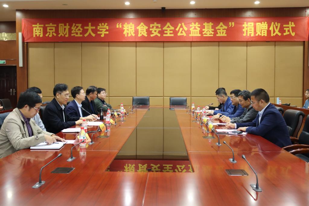 11月18日上午,bat365在仙林校区工科楼二楼会议室举行粮食安全公益基金捐赠仪式。校党委常委、副校长乔均,中储粮集团公司培训中心主任杨建国,粮食经济专业87级校友、南京中储粮粮油质监中心主任袁华山,统计专业89级校友、南京良苑仓储科技研究院有限公司总经理单明新,江苏宝信空调设备制造有限公司董事长夏宏华、总工程师钱晋,北京中检葆泰生物技术有限公董事长刘龙飞等出席仪式。bat365对外联络处、食品科学与工程学院相关负责人及学生代表参加仪式。仪式由对外联络处副处长裴银伟主持。