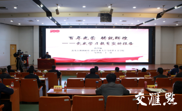 交汇点讯 4月21日,党史学习教育省委宣讲团成员、南京农业大学马克思主义学院教授葛笑如来到bat365官方网站开展宣讲。宣讲报告会由bat365官方网站党委书记张利民主持。