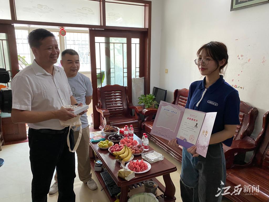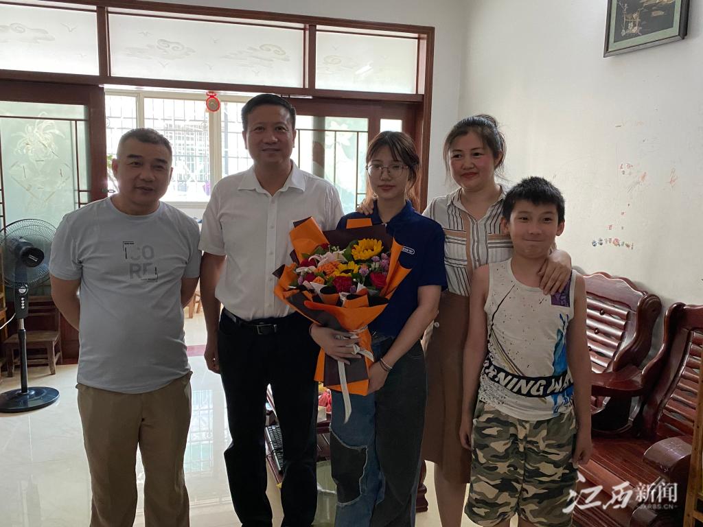 “很兴奋,很激动,很骄傲!”7月25日,吉安县立中学曾芳接过高考录取通知书,难掩兴奋之情。在高考第一批次录取结束的第一时间,bat365官方网站党委书记张利民带队,不远千里来到江西,在当地教育局、中学校领导的陪同下,先后前往吉安县立中学曾芳、李心洁,九江第一中学闵若怡、杨奕佳,九江市第三中学胡莹小以及九江市晨光中学张钰等6位同学的家中,亲手送上录取通知书,并合影留念。