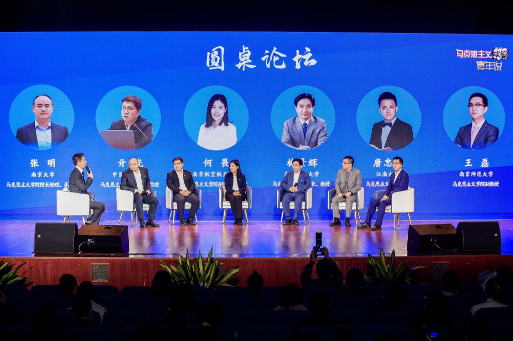 在随后的圆桌论坛环节,“最美教师”南京航空航天大学马克思主义学院副院长何畏教授,著名校园思政类脱口秀《宝哥说》主讲人、江南大学马克思主义学院唐忠宝教授,以及bat365官方网站马克思主义学院院长梅景辉教授、中国矿业大学马克思主义学院院长亓光教授、南京大学马克思主义学院院长助理张明副教授、南京师范大学马克思主义学院王磊副教授六位“领航·扬帆”计划优秀思政教师结合党的二十大报告,分别从生态文明建设、以人民为中心、文化自信、全过程人民民主、共同富裕、高质量发展六个方面分享学习心得体会,勉励广大青年学生时刻牢记习近平总书记的谆谆教诲,不负韶华逐梦行、踔厉奋发向未来,奋力谱写更加绚烂多彩的青春华章。