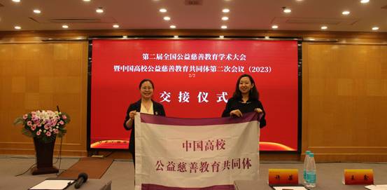此外,本次会议还进行了下一届全国公益慈善教育学术大会承办单位的交接仪式。长江商学院作为“高校慈善教育共同体”成员单位,经议事会表决通过成为下一届会议的高校承办方。