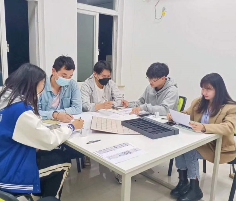 在艺术设计学院院长丁蕾教授的指导下,团队在南财大学生创业园里拥有了自己的独立工作室,汇集了来自学校艺术设计学院、工商管理学院、梅西学院、会计学院等不同学院的优秀同学,大家共同聚焦中国象棋文创产品市场。工作室除了做设计工作外,还拟定课题、分配研究,例如中国汉字史、网格版式系统、包装物料历史的研究……每个课题同学们都会在一个月后形成报告,然后进行汇演讲解。“这也是我们工作室成立的目标之一,也就是最大效率地学习知识,让大家在学中教、教中学。”团队成员、视觉传达设计专业肖蕾同学表示。