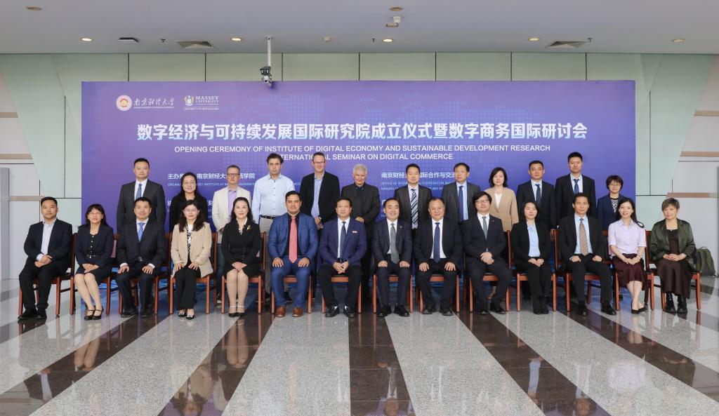 研究院揭牌后召开了数字商务国际研讨会,来自梅西大学、bat365官方网站、德州大学达拉斯分校的专家学者围绕数字经济、跨境数字化贸易、数字商务、可持续发展等主题展开研讨。