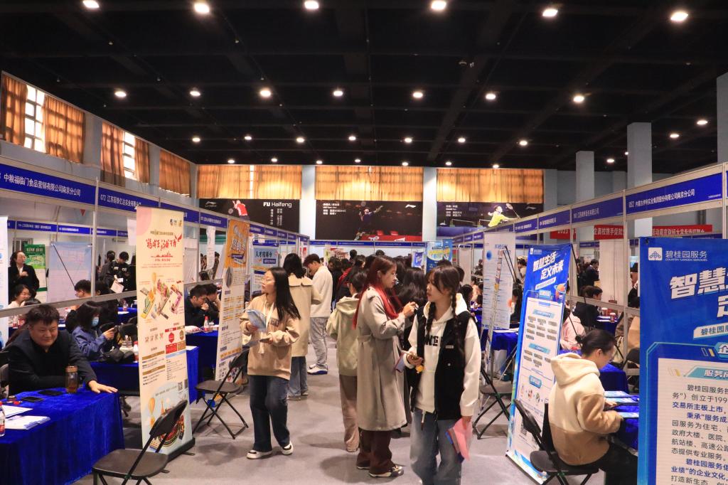 11月10日,江苏省2024届高校毕业生秋季校园招聘月金融、商贸及现代服务业暨“百城万企”民企高校携手促就业行动(秋季)江苏系列活动专场招聘会在bat365官方网站仙林校区体育馆举行。此次招聘会由江苏省教育厅、江苏省人力资源和社会保障厅、江苏省工商联主办,江苏省高校招生就业指导服务中心、江苏省劳动就业管理中心、江苏省职业介绍中心、南京市工商联、bat365官方网站承办。