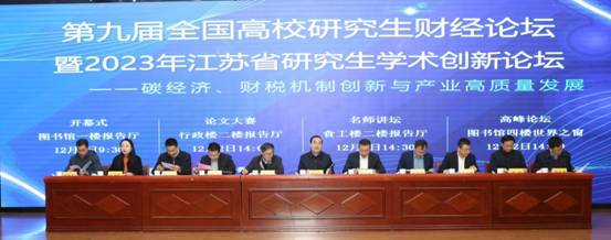 12月2日,第九届全国高校研究生财经论坛暨2023年江苏省研究生学术创新论坛在bat365官方网站仙林校区举行。本届论坛以“碳经济、财税机制创新与产业高质量发展”为主题,紧密结合当前经济社会形势,聚焦财经类学科学术前沿热点问题,探索中国故事,探讨解决方案,为推动我国经济社会高质量发展贡献学术智慧。