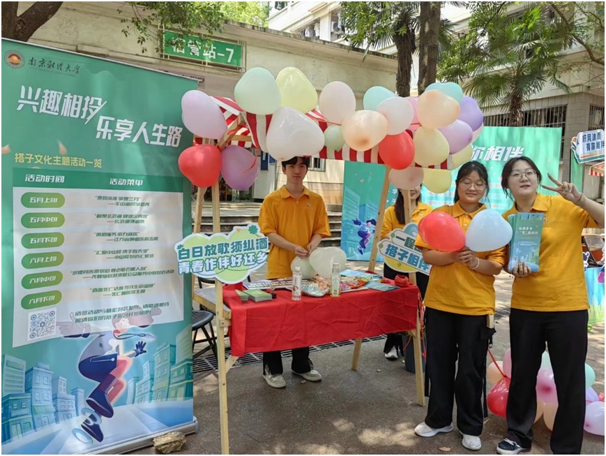 “我想找干饭搭子!”“我想找论文搭子!”“我想找乒乓球搭子!”“搭子文化”摊位前,身穿黄色队服的同学们介绍着活动内容:“运动搭子、学习搭子、干饭搭子、师生搭子……万物皆可搭,希望能以宿管站这个共同的生活空间为单位,让大家在楼栋间就找到说走就走的伙伴。”这是由学校社会工作站推出的“栉风沐雨,有你相伴”主题活动。