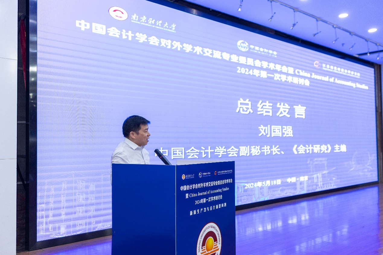 闭幕式中国会计学会副秘书长、《会计研究》主编刘国强作总结发言,对本次会议的成功举办表示肯定。他指出本次会议搭建了一个探索科学、启迪思想、孕育创新的思想碰撞平台,与会专家学者们聚焦会计前沿的理论与实务,共谋发展良策。