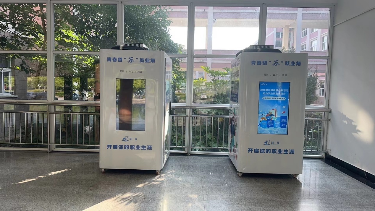 “再也不用愁在哪儿面试啦!”财政学大三学生尚浩然最近预约使用了智慧面试亭,“体验感很不错!学校提供了这样一个隔音、干净、安静、便捷的面试环境,真是实力宠学生!通过AI模拟面试也让我找工作更有信心了。”