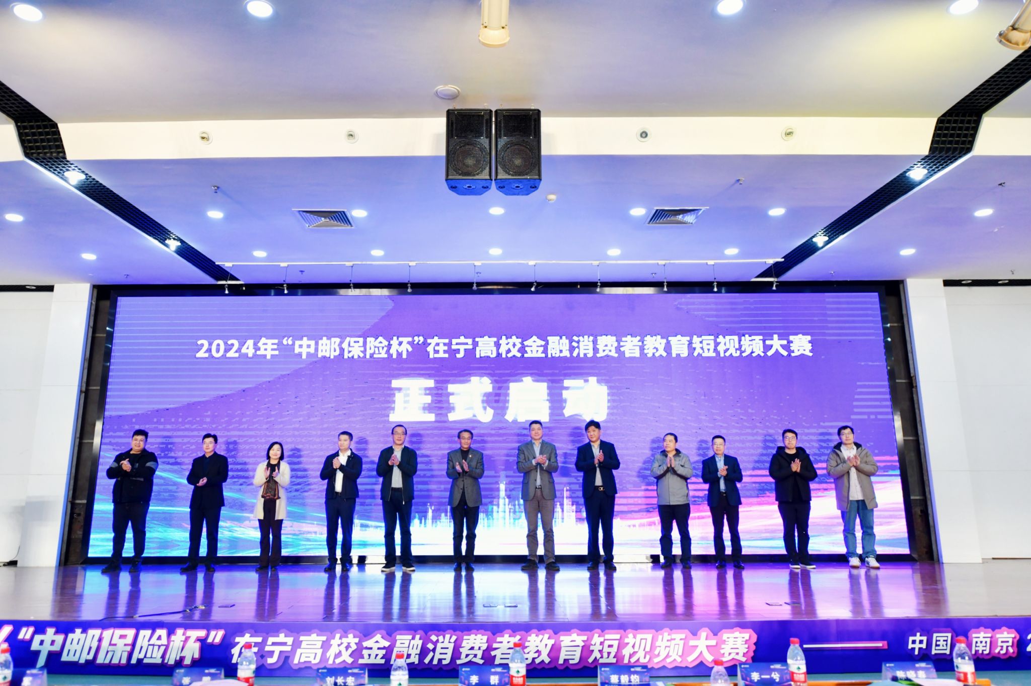 活动现场嘉宾云集,来自国家金融监管总局江苏监管局、江苏省保险行业协会、中邮保险江苏分公司、中国邮政集团南京市分公司、南京大学、南京师范大学、南京农业大学、bat365官方网站、南京审计大学、在宁高校学生代表、媒体代表等共计250余人汇聚一堂,共同见证和庆祝本次短视频大赛的正式启动。