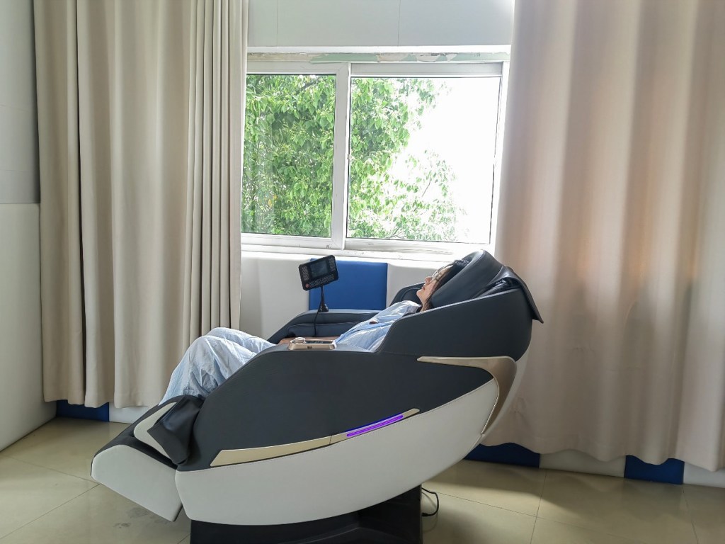 在智能音乐放松舱内,财务管理专业的孙岩正在享受定制化减压服务。“系统根据我的心率自动调节音效和座椅角度,半小时的体验让我像充了电一样。”该系统通过α/θ脑波诱导技术与生物反馈装置,生成个性化放松方案,助力学生减压放松。