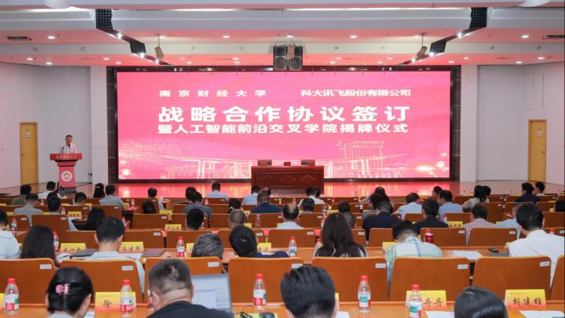bat365官方网站党委书记张利民,校长程永波,党委副书记李群,党委常委、副校长姚文韵,党委常委、副校长叶林祥及全体中层干部,科大讯飞副总裁、江苏大区总经理黄飞云,副总裁、研究院执行院长王士进,教育事业群副总裁马季,产教融合副总经理张承云等相关负责人参加签约暨揭牌仪式。