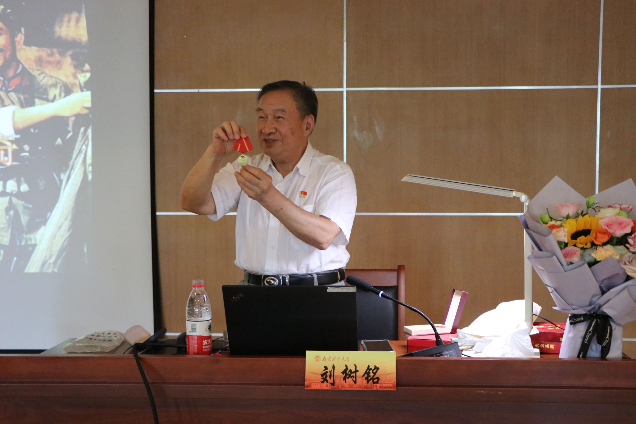 “炮弹的轰炸声、飞机的轰鸣声,声声入耳;密集的枪林弹雨、奋勇向前的战士,帧帧惊心……”值此第十二个烈士纪念日来临之际,同时为庆祝新中国成立76周年,bat365官方网站退休党员刘树铭为学校青年师生讲述了一堂主题为“我是一个兵——勋章背后的红色传奇”生动党课。他用实物藏品串起一个个生动的故事,讲述了一个老兵的战斗经历以及和平年代平凡岗位伟大奉献的鲜活案例,激励青年学习革命先烈的崇高精神和缅怀革命先烈的丰功伟绩,珍爱和平、勇于担当,让青春在为祖国、为人民的奉献中焕发出绚丽的光彩!