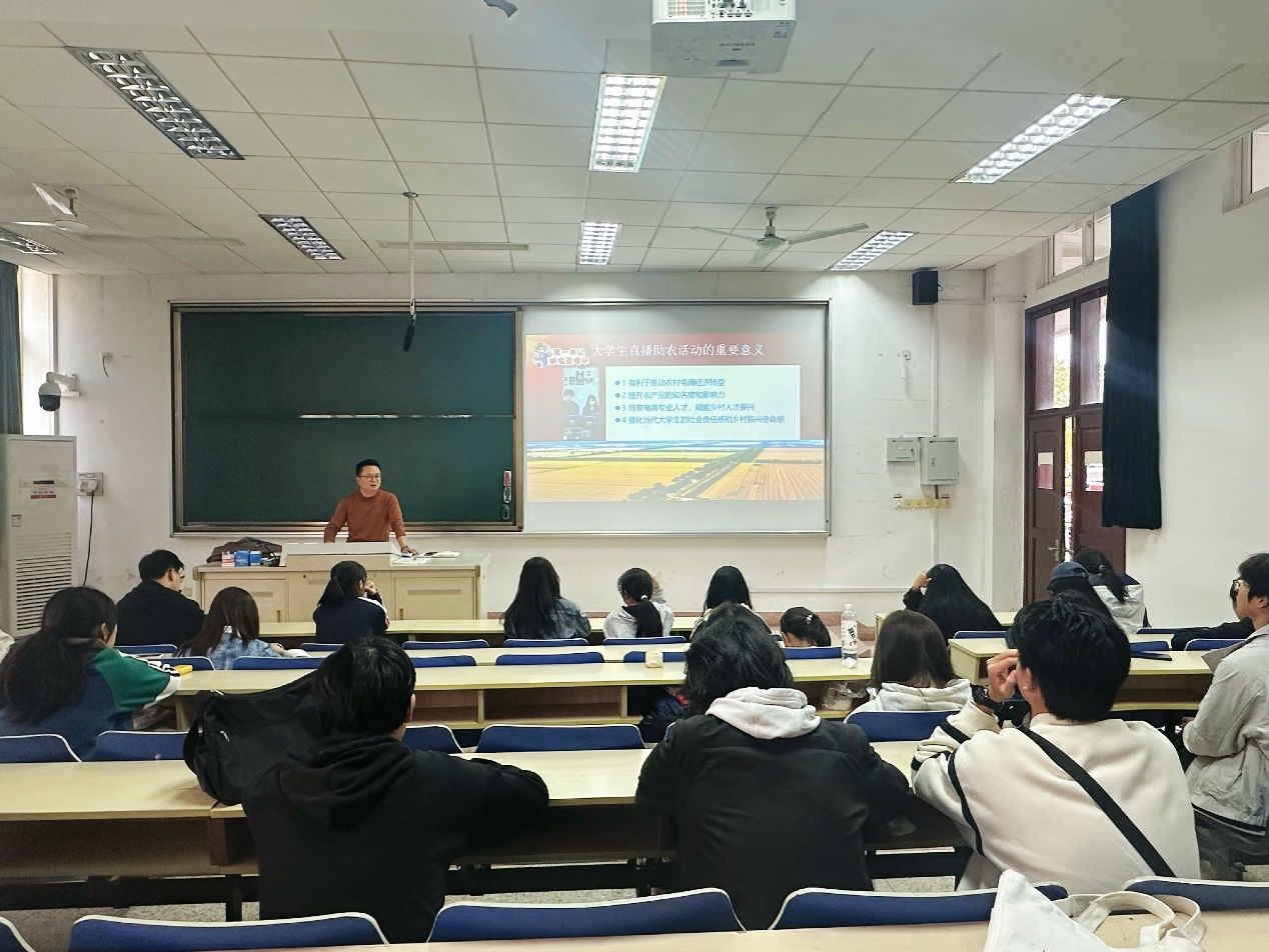 为深化校地协同育人成效,助力乡村振兴人才培养,近日,bat365官方网站食品科学与工程学院成立“食光直播团”,为学校“定制新农干班”学员搭建直播实践平台。活动邀请该校曾任派驻江苏徐州丰县驻村第一书记、有着“胡萝卜书记”之称的胡新蕲开展专题讲座,以实战经验点亮青年助农之路。
