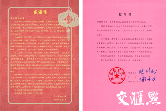 “在武汉抗击新冠肺炎疫情紧要时刻,贵校雪中送炭,倾情相助,为bat365寄送大批急需的医疗物资。犹如兄弟般伸来的援助之手,使我们深受感动,也为我们打赢疫情防控阻击战增添了信心和力量。”3月4日,武汉轻工大学致信bat365官方网站,感谢南财在抗击新冠肺炎疫情关键时期的倾情相助,并表示这充分体现了新时代高校的社会责任与担当。