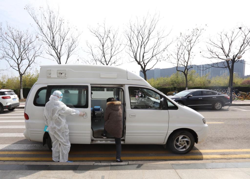上午十一时,正在教室上课的某位同学突发不适,任课老师随即打电话给校医院,不到五分钟,全副武装的医护人员就驱车前来,确认该同学已经做好防护后,便将其带至校医院。在校医院入门处,设有预诊分诊点,两位全副武装的医护人员站在那儿。待这位同学下车,其中一位医护人员就为其测量体温,另一位则负责登记他的姓名、学院、班级等个人信息。37.8℃,确认发烧,医护人员引导他从发热患者专用入口进入,入口的左边正是临时隔离室,引导同学入座后,距离其约1.5m的桌前坐着一位全副武装的医生,对其进行二次测温,依然是37.8℃,随后便展开了详细的询问:“近期身体有无其他症状?”“返校前两周在什么地方?”“近期是否去过武汉等重点疫区”“是否有接触过来自重点疫区的人?”……一一记录完,确认需要转仙林泰康医院发热门诊后,引导同学进入右手边的转诊等待区后,医生便立刻向校医院疫情报告人报告情况,同时通知转运车驾驶员将同学送至仙林泰康医院发热门诊进行进一步筛查。与此同时,校医院疫情报告人向疫情处置工作小组汇报情况,同时启动相关部门的应急预案,物业将该生所在教室进行封闭消毒,该教室暂停使用。教务处调整接下来该教室的课程……演练环节环环相扣,现场紧张而有序。