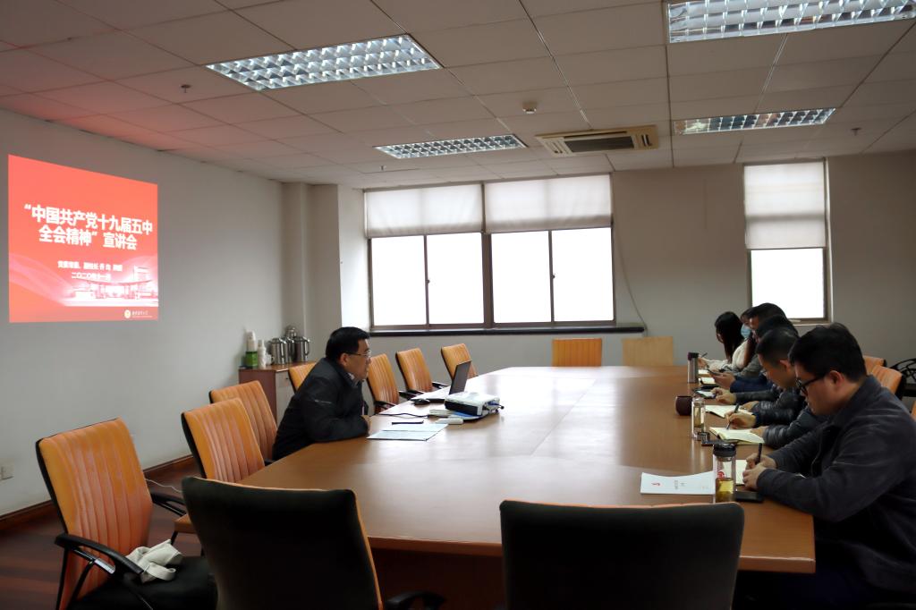 乔均副校长从“党的十九届五中全会的召开背景、会议内容及其《建议》的起草”“深刻认识我国进入新发展阶段的重大意义、有利条件和重要特征”“准确把握2035年远景目标和‘十四五’时期我国发展的指导方针、主要目标、重点任务”“牢牢把握构建新发展格局的战略构想和重要着力点”“坚持党的全面领导,动员各方面力量为实现‘十四五’规划和2035年远景目标而团结奋斗”等五个方面,结合习近平总书记在扎实推进长三角一体化发展座谈会及全面推动长江经济带发展座谈会上的重要讲话精神,全面深刻地解读了党的十九届五中全会的精神内涵。他表示,党的十九届五中全会是在即将夺取全面建成小康社会伟大胜利、开启全面建设社会主义现代化国家新征程的关键节点召开的十分重要的会议,对于坚持和发展中国特色社会主义、实现中华民族伟大复兴的中国梦具有全局性、历史性的意义。我们要深入领会贯彻中共中央关于当前形势的重大判断和关于推动高质量发展、构建新发展格局等重大部署,在中国共产党领导下,有方向、有信心、有力量地昂首阔步,奋勇向前,努力推进学校教育事业发展。他要求支部全体党员立足岗位实际,将党的十九届五中全会精神融会贯通,将初心和使命内化于心、外化于行,充分发挥基层党组织战斗堡垒作用和共产党的先锋作用,坚定共产主义远大理想,围绕学校的中心工作,服务大局、恪尽职守,自觉地为学校高水平财经大学建设和高质量发展不懈奋斗。