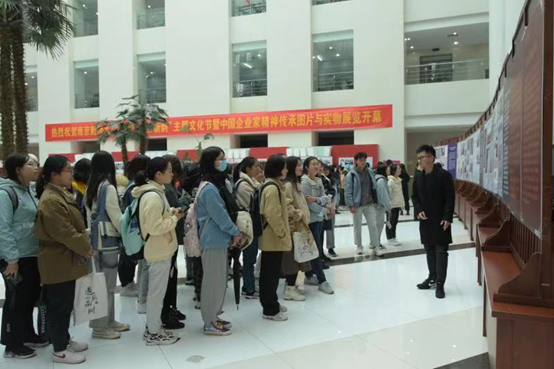 11月23日,外国语学院与马克思主义学院组织2020级新生及研究生于图书馆参观“中国起业家精神传承图片与实物展览”,深刻体验“红色起业家精神”实境课堂。外国语学院党委书记李骏、会计学院卜金涛书记、会计学院党委副书记刘颖陪同观看。起业家博物馆项目团队成员江雪寒、柳雨昂、潘嘉璐、白洋作详细介绍,讲述了中国企业家们的创业史、奋斗史,从实业救国的民营企业到当下高速发展的创新型企业,一个个动人故事的背后无不彰显艰苦奋斗、敢闯敢干、聚焦实业、做精主业的中国企业家精神。