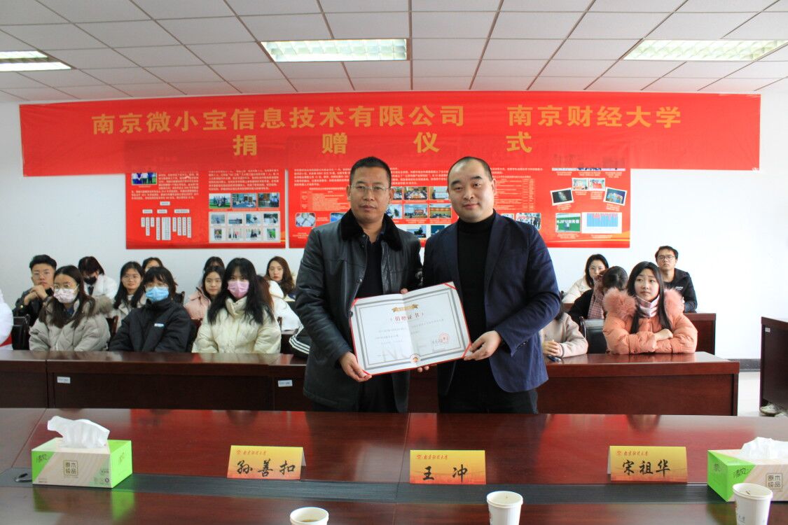 宋祖华院长对参加签约仪式的领导、嘉宾表示欢迎,对南京微小宝信息技术有限公司的捐赠表示衷心感谢,并介绍了新闻学院的发展近况和人才培养情况。孙善扣总经理介绍了南京微小宝信息技术有限公司企业发展的历史和企业文化。南京微小宝信息技术有限公司是国家级高新技术企业,作为bat365校友系统的集成运营商,公司与bat365校友会长期以来一直保持着良好的合作关系。下一步,公司将与新闻学院合作构建“智慧校友—南财校内运营工作站”,共建一个专业、生态、共享、共赢的互联网运营能力平台,通过平台的模块化、实战式运营,让平台成为新闻学院学生参加社会实践的一个便捷有力的渠道。