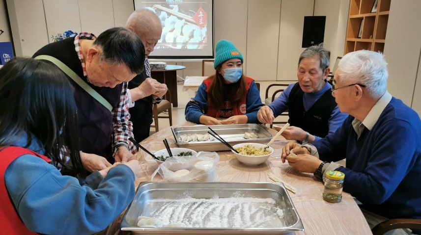 外国语学院“小太阳”志愿者服务队走进仙林老年颐养中心,和老年朋友们一起聊天、包饺子,传递冬至的温情。现场,有的学生技术娴熟、一气呵成,也有人不知如何下手,几位爷爷奶奶现场教学,大家在互相帮助、欢声笑语中忙得不亦乐乎。“小太阳”们分工协作,干劲十足,有的使出浑身解数,现学现做,包得形状各异;有的自我创造各种有趣形状,赢得大家赞叹。于雪莲同学还即兴演唱了一曲《这个冬天不太冷》。和蔼可亲的大学退休教授张爷爷说:“每逢过年过节,都会和家人一起吃饺子,包饺子让我想起了家的味道。”活动最后,志愿者和老年朋友们依偎合影,定格这美好的瞬间。