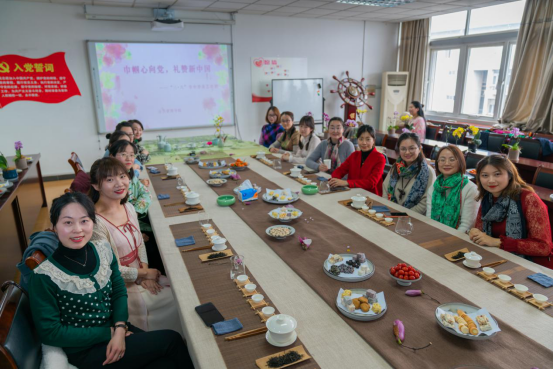 活动现场,气氛热烈,女教师们认真学习茶文化知识,跟着茶艺师的步骤,学习茶叶冲泡技巧,体验茶艺的乐趣。此次交流分享,大家纷纷表示收获颇多,受益匪浅,在陶冶情操的同时感受茶艺之美和厚重的中华文化底蕴。