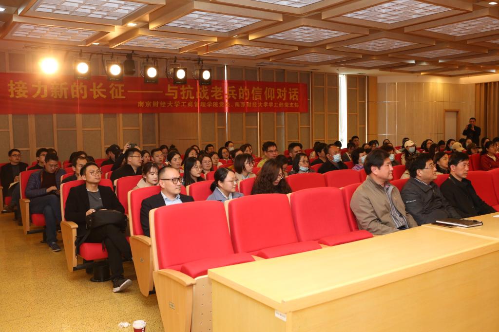 4月7日下午,工商管理学院党史学习教育“灯塔讲堂”在仙林校区图书馆音乐欣赏厅开讲。讲堂第一讲“传承红色基因 接力新的长征——与抗战老兵的信仰对话”由工商管理学院党委和校党委学生工作部党支部联合举办,活动邀请了抗战老兵、南京南钢钢铁联合有限公司离休老干部王生和高在书担任主讲嘉宾。校党委常委、副校长乔均出席活动。学工部党支部全体党员以及工商管理学院党员师生参加活动。