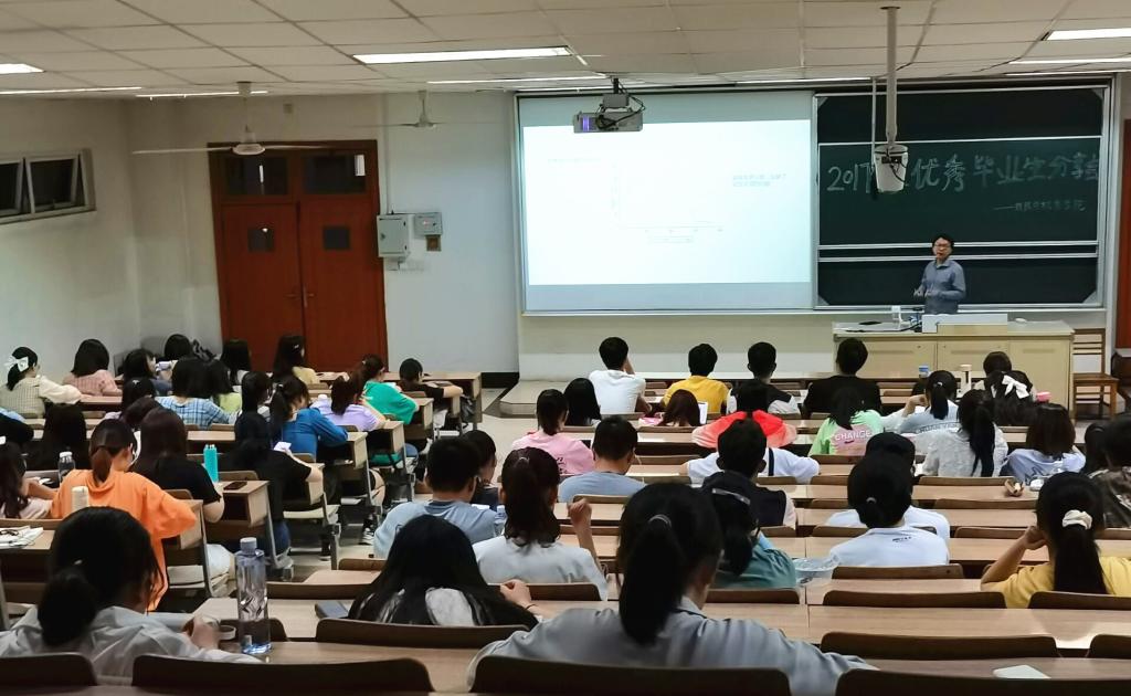 叶兵老师介绍了学院2017级毕业生毕业去向,对当下的考研形式作出分析,并希望大家尽早确定目标,付出实际行动。被中南财经政法大学录取的朱慧同学,与南财再续前缘的瞿玲玲同学、赵佳怡同学分别从选专业和选学校、考研信息搜集、备考内容三个方面来讲述经验。她们认为,考研的成功等于正确的方法、不懈的努力、良好的心态以及恰当的复习材料,建议大家也要树立正确的得失观,平常要有正常的作息,学会调整自己的心态。将赴英国留学的顾晗同学从制定适合自己的目标和计划分享经验,介绍了她从准备、申请、到面试等出国留学的全过程,为有出国意向的同学提供了一些借鉴。最后,考公上岸的陶幸园同学,讲述了她自己如何准备笔试、面试,最后成功进入常州税务局的经历,解决了大家对于考公方面的一些疑问。在场同学进一步与分享者们交流,询问更多与未来学习、就业等方面的细节问题。