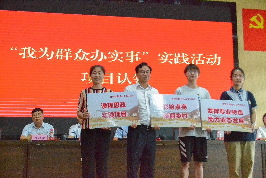 党建共建签约仪式上,刘浩书记、张利海校长、高原副院长、唐姗姗副行长分别与蔡云书记签订了党建共建协议书。艺术设计学院副教授李娜代表环境设计系上台认领了“为群众办实事”实践项目。该实践项目依托bat365设计类创新创业课程,组织学生志愿团队,为桦树村绿色场景进行文创设计。刘浩书记代表学院将“bat365官方网站艺术设计学院课程思政实践基地”铜牌授予桦墅村蔡云书记。