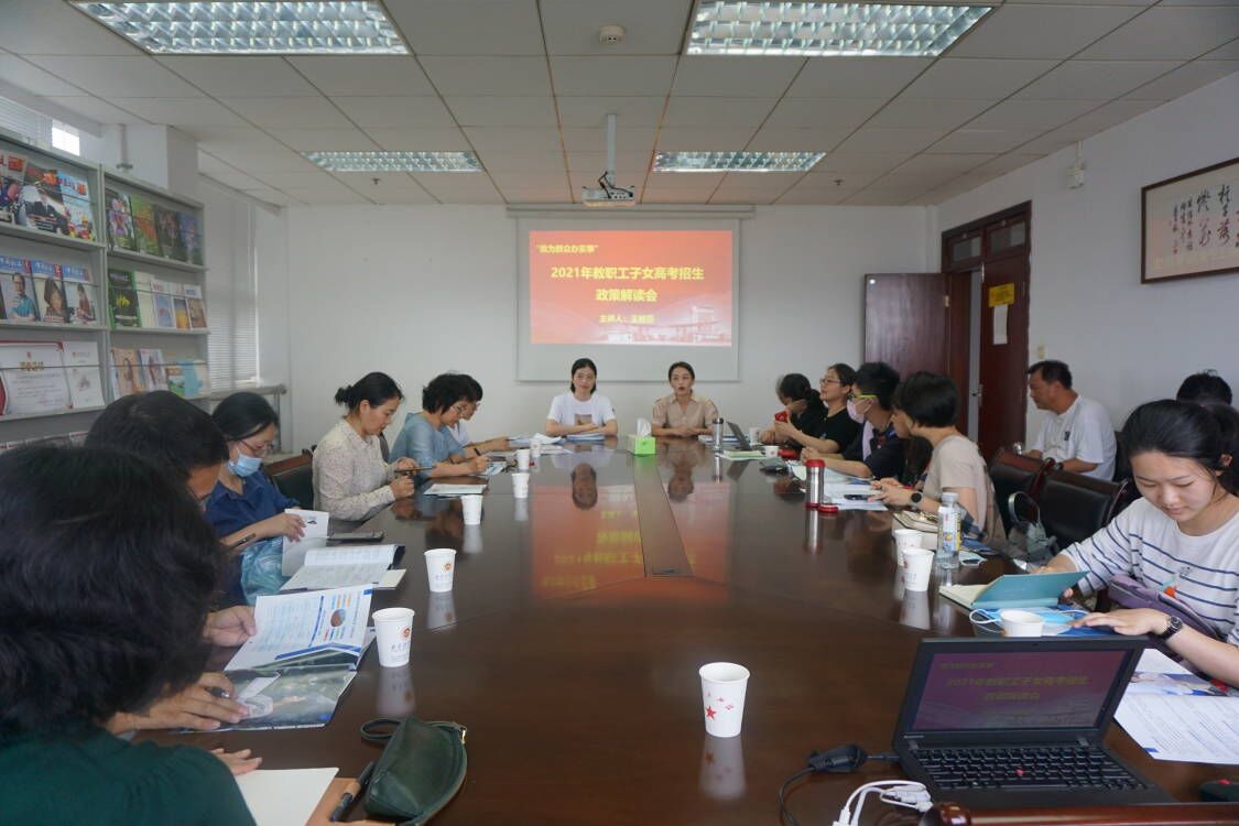 6月28日下午,校工会、校学生处招生办在仙林校区行政楼1501会议室举办了教职工子女2021年高考政策专场解读会。来自各分工会的二十多名教职工参加解读会,会议由校工会副主席葛雷主持。