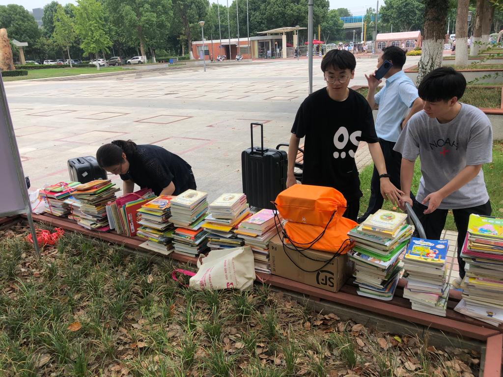 2020年,法学院主动对接了甘肃省武威市凉州区长城小学,共建社会工作教育参与脱贫攻坚实习实训基地并正式挂牌。长城小学位于腾格里沙漠边缘,学校教育条件落后,学生也以留守儿童居多。法学院师生纷纷出资捐赠,募集了近千册图书,为该小学建立了一个爱心图书室。今年6月,在南京外国语学校仙林分校小学部二(16班)的孙珝清和王紫慧同学的倡议下,学校一年级、二年级、五年级和六年级50多个班级共计募集图书2000余册,捐赠给长城小学。不少同学还把自己家里最喜欢的书拿出来,在书的扉页写上温暖的祝福话语和读书心得,以独特的方式与长城小学的小学生进行对话。“希望你能在知识与书的海洋里遨游,加油,你们是最棒的。”6月30日,参与寄送的法学院社工专业李丁一同学从早上9点半一直忙到下午2点半,热得满头大汗,他说:“虽然很累,但是想到这些书能够给孩子们带去丰富的精神食粮,内心充满了力量。”