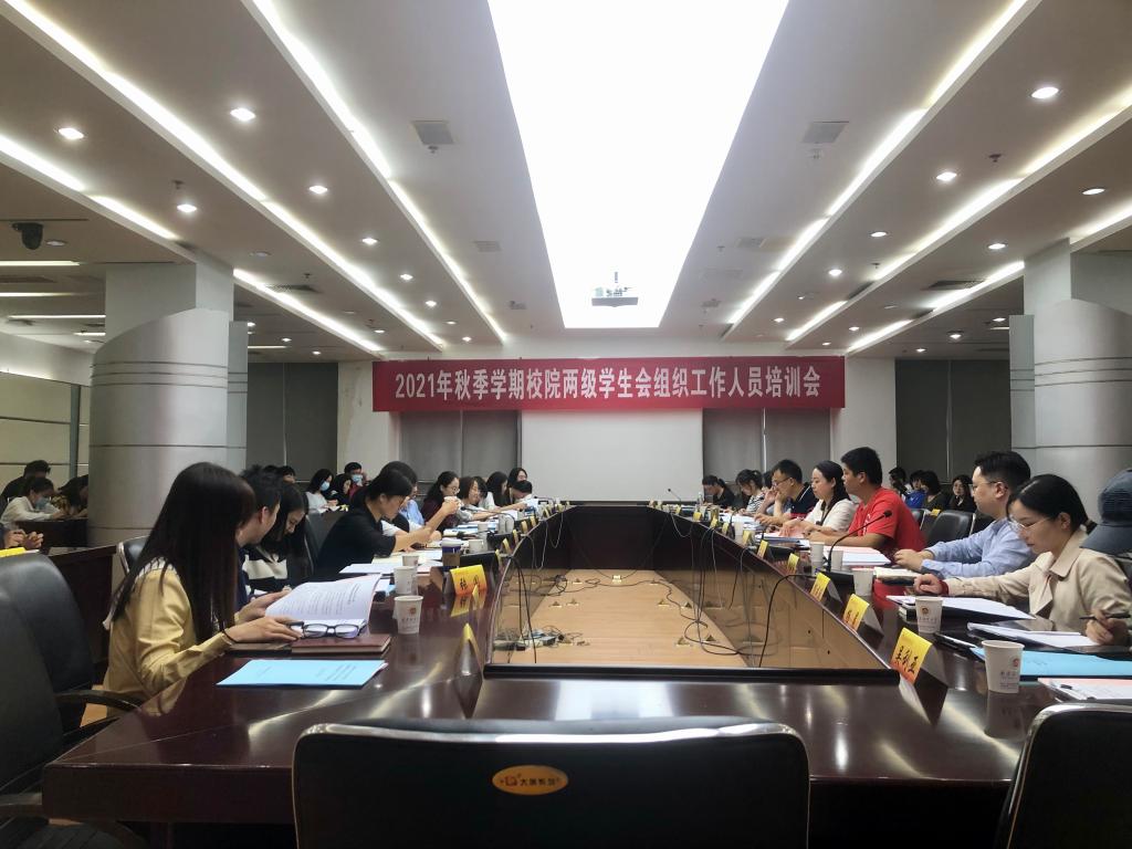 10月8日下午,秋季学期校院两级学生会组织工作人员培训会在行政楼16楼会议室召开。校团委全体成员(含兼职副书记)、校学生会(研究生会)主席团以及部门工作人员、院学生会(研究生会)主席团成员、学院分团委负责老师参加会议。会议由校团委副书记张蔚伟主持。