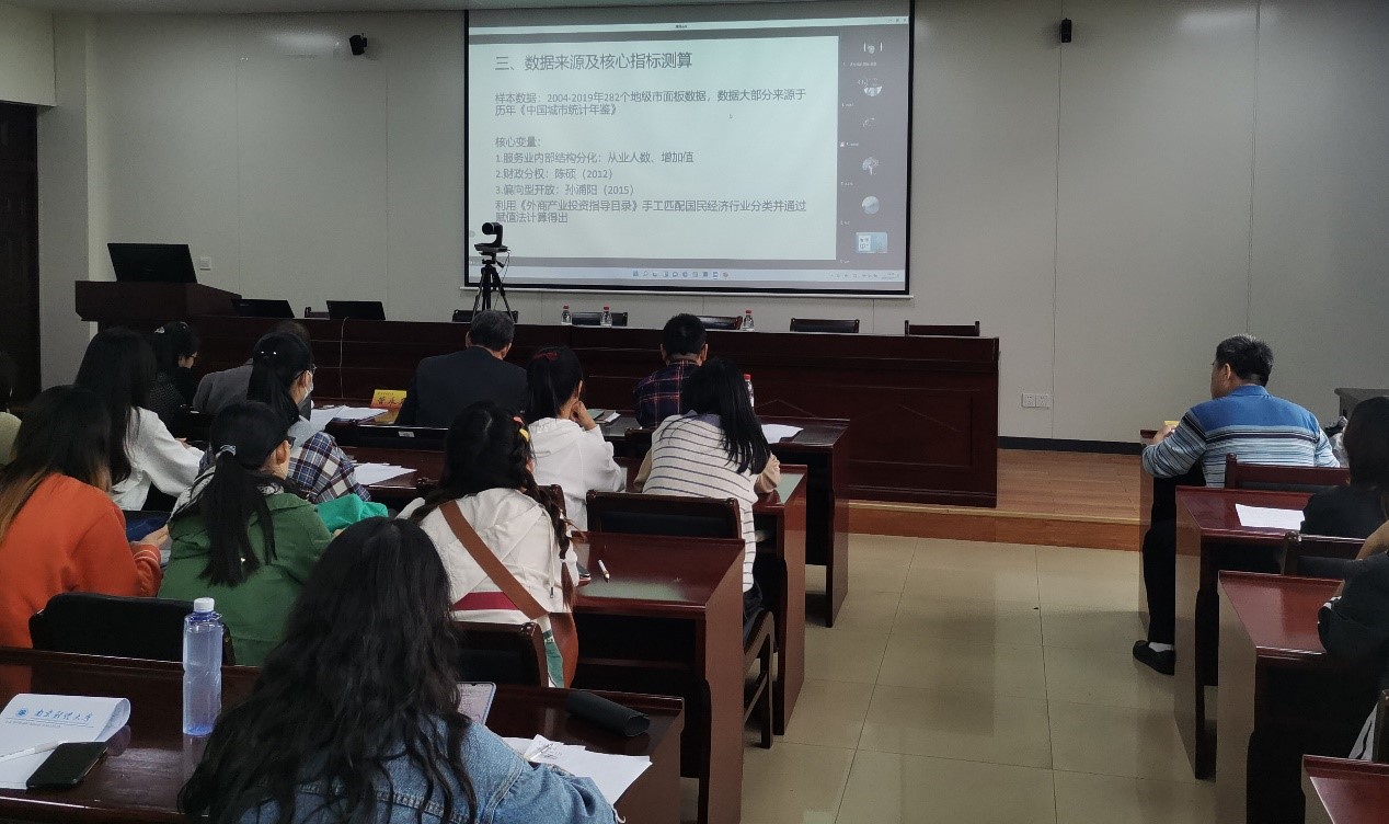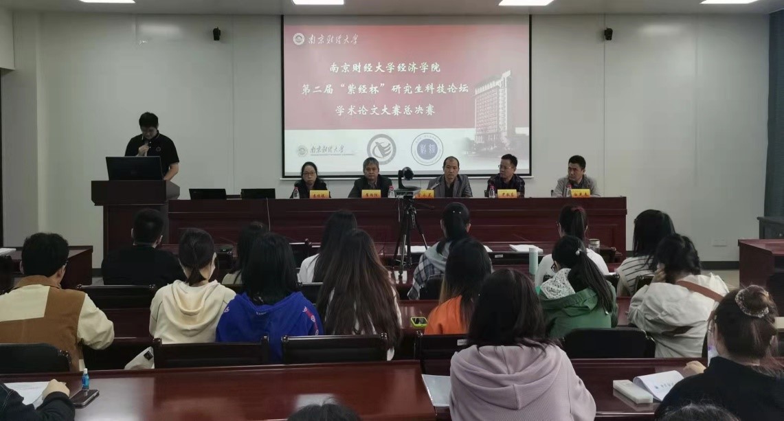 10月11日下午,第二届“紫经杯”研究生科技论坛学术论文大赛决赛在仙林校区德经楼307会议室举办。本次论文大赛由经济学院承办,以“经世立民,抒我见解——双循环新发展格局下中国经济高质量发展的理论与实践”为主题,面向全国各高校财经类专业研究生征集优秀学术成果。论文大赛采用线上线下相结合的模式进行,参赛选手通过腾讯会议线上答辩,评委老师现场连线指导。研究生院副院长、学位办公室副主任管永昊受邀担任评委。经济学院副院长尹敬东、党委副书记袁怡琨、统计学学科带头人白先春参加活动。经济学院全体研究生现场观摩学习。活动由经济学院副院长崔向阳和经济学院研究生会主席姚阳阳主持。