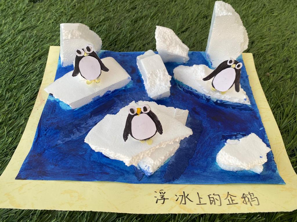 同学们从保护地球、理性消费的大角度出发,将心中的诉求与愿望融入到手工作品中。同学们用废弃的泡沫板堆积成一座座冰山,而企鹅们则无助地趴在浮冰上,凝望着这支离破碎的家园,无助的眼睛仿佛在控诉快递过度的外包装以及泡沫制品对环境造成的污染。国贸2102朱雨枫同学做完后颇有感触,“刚成为大学生的我偶尔也会开启‘买买买’模式,但今天制作的过程让我意识到我们的过度消费对于地球、生物的影响之大,今后,我一定从我做起,倡导身边的同学理性消费、保护环境。”除此之外,同学们更是展开联想,将墙角边废弃的快递盒通过巧妙的剪裁和上色,做成了一个个实用且可爱的门牌,装饰宿舍单调的木门:拥有甜美微笑的哆啦A梦带着“欢迎回家”热情地迎接每一位来客,永远挥着蓝色手臂的小怪兽迫不及待地向路过的同学们展示着南财的美景……