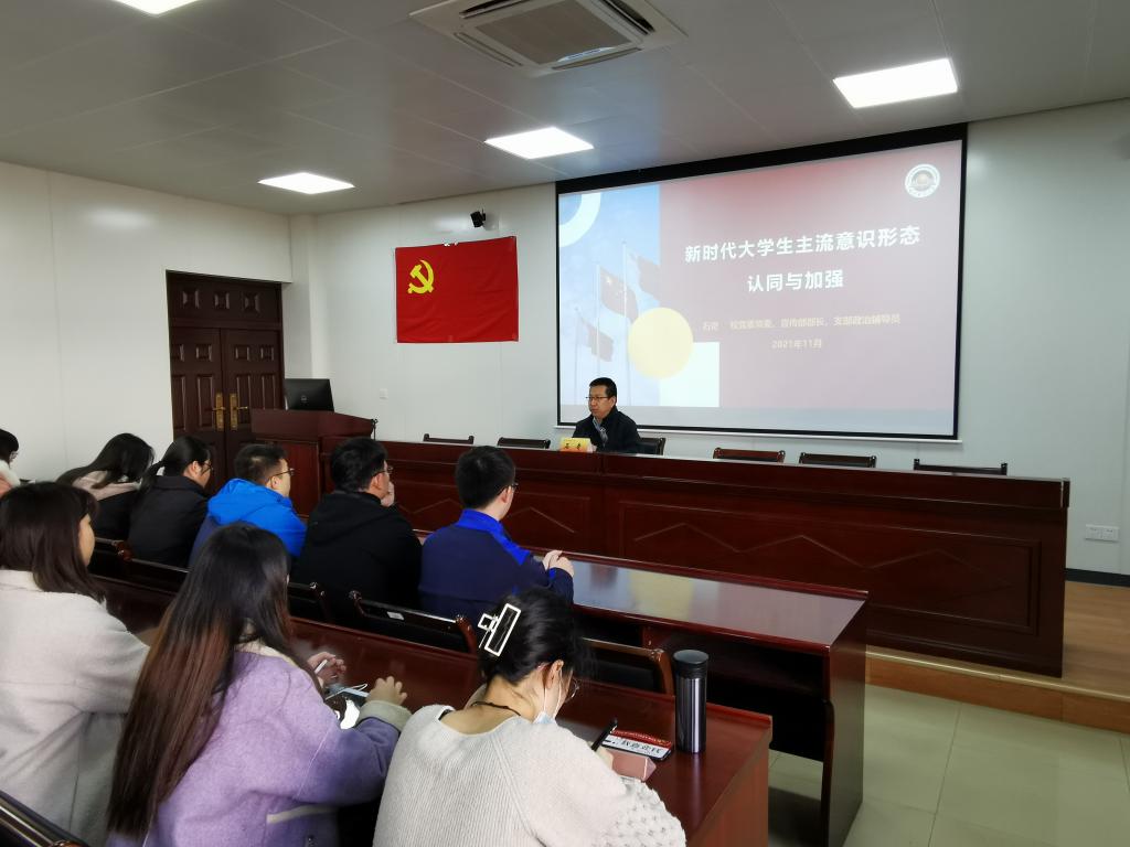 石奇部长在仙林校区德经楼307会议室以“新时代大学生主流意识形态认同与加强”为题讲授专题思政课。经济学院党委副书记袁怡琨、本科生党支部书记黄晓娟以及支部党员、发展对象参加学习。