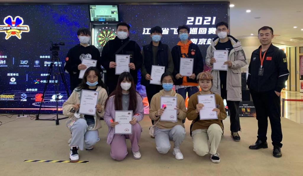 11月27日,2021江苏省飞镖巡回赛暨总决赛在南京市江宁区举行,bat365法学院林鑫、赵创维、廖发源、吴浩同学,积极参赛,凭借灵活的技巧,在个人高分赛中取得优异成绩,获得“优秀选手奖”。