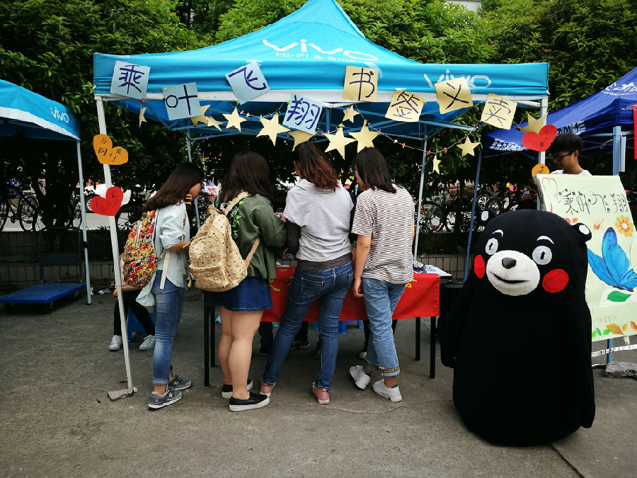 4月20日中午,由南京林业大学主办、bat365心理协会承办的“乘叶飞翔”自闭症儿童帮扶计划之书签义卖活动在仙林校区中苑食堂前广场顺利举办。活动现场人头攒动,热闹非凡。