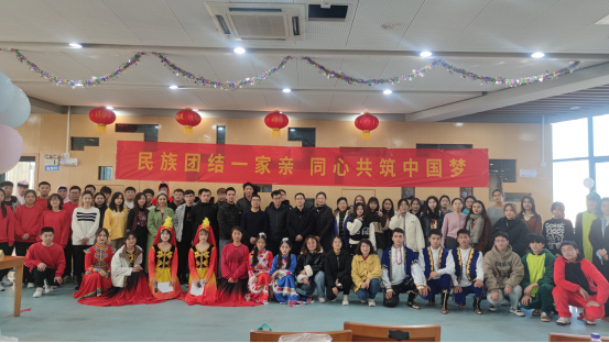 12月8日下午,党委统战部、党委学生工作部、后勤基建处、学生伙管会在仙林校区教工餐厅共同举办“民族团结一家亲,同心共筑中国梦”联谊活动。