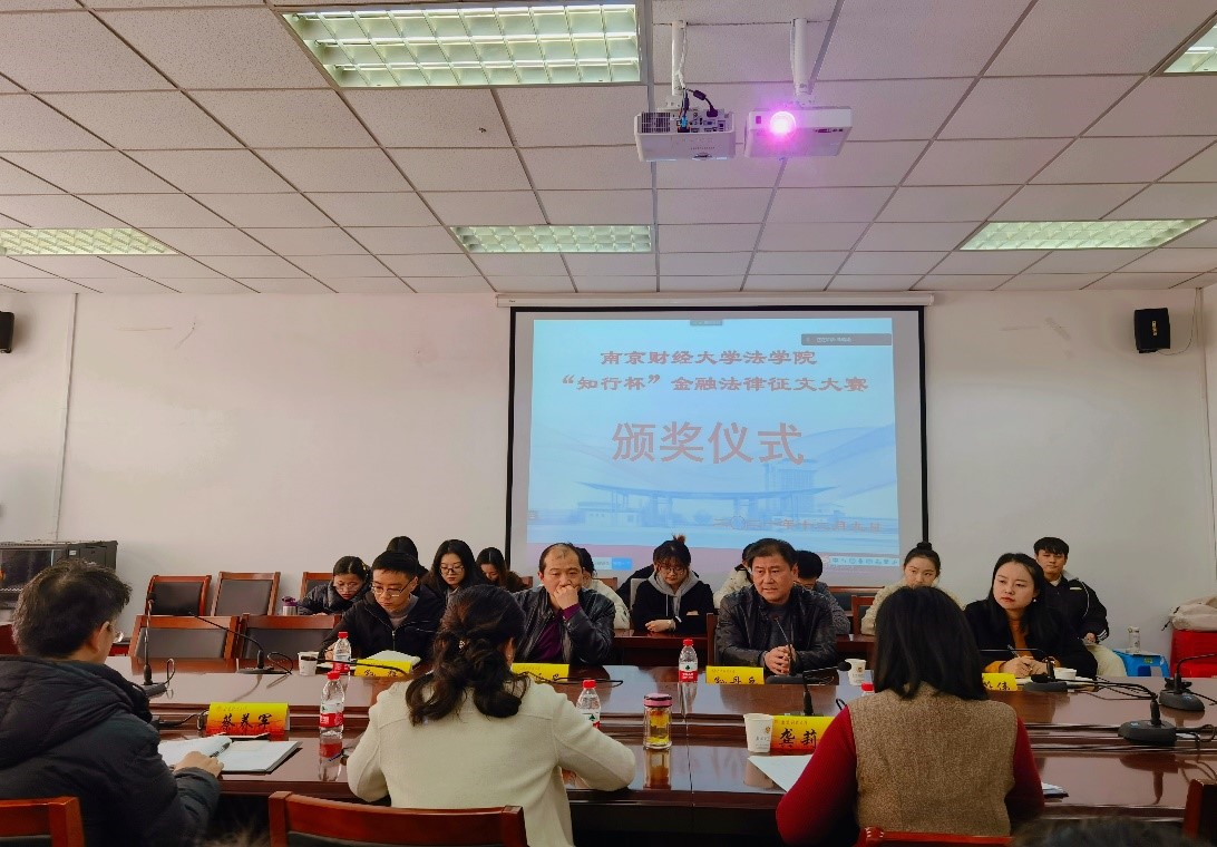 12月10日下午,法学院在仙林校区德正楼四楼会议室举办“知行杯”金融法律征文大赛颁奖仪式。此次颁奖仪式采取线上线下同时进行的方式。党委研究生工作部部长孙丹兵,研究生院副院长管永昊,校团委副书记张蔚伟,法学院副院长蔡养军、陈红梅及征文比赛参赛者参加仪式。颁奖仪式由法学院党委副书记龚莉红主持。