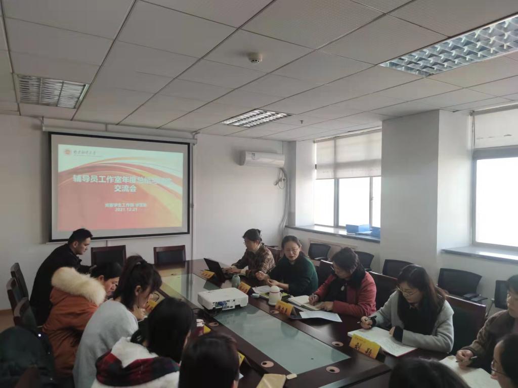 为加强学校辅导员队伍专业化、职业化建设,培育打造品牌辅导员工作室,12月21日下午,党委学生工作部在仙林校区行政楼605会议室召开校院两级辅导员工作室年度工作总结交流会。学工部部长韩力争、各辅导员工作室负责人、部分学院党委(党总支)副书记参加会议。会议由学工部副部长张小荣主持。