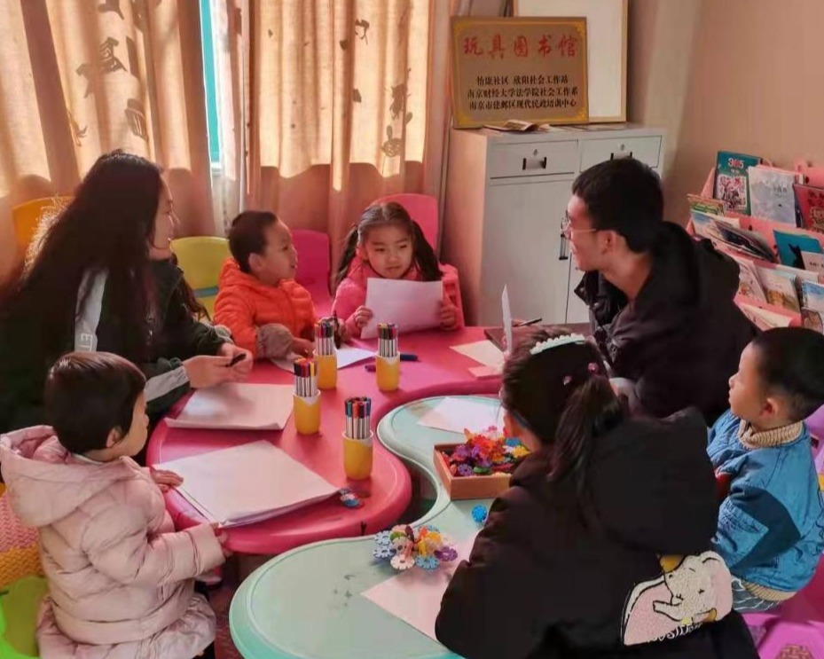 从11月初开始普爱社进入建邺区怡康新寓开展了为期近两个月的“玩具图书馆”志愿服务活动。同学们开展了以“认识四季”“垃圾分类”“环保行动”“保护水资源”以及“珍惜粮食”“节约资源宣传”“冬日感恩”等为主题的活动。在各具特色的主题活动中,志愿者们秉持“普爱”初心,采用了绘画、儿歌以及做游戏等多种易被孩子接受的形式,就社会热点问题对小朋友进行宣传普及教育。