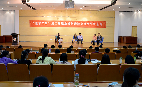 交流会上,四位嘉宾向同学们讲述了各自的职业生涯规划道路,分享了大学的学习心得、职场的面试技巧等话题。曾岩同学成功入职上海浦东发展银行南京分行,他建议大家要注重培养独立思考的能力,学会自我管制与调整,尽早确立职业目标,在熟悉岗位的基础上,根据自身兴趣选择就业方向。现就职于创新工场的蔡佳欣同学主要向同学们介绍了职场礼仪,强调了实践的重要性。谷广亚同学现已成为金佰利中国2013年管理培训生,他就自己的职业规划和求职经历等方面与现场观众进行了交流。赢得帝国理工大学等多所国外名校青睐的陈辰同学结合自己的出国之路给出了专业的指导,建议有留学意向的同学要提前做好各项准备。