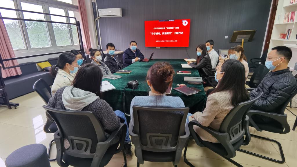 防疫期间,广大师生顶着巨大的压力,繁忙地开展各项抗疫工作,辅导员队伍始终工作在一线,感人事迹不断涌现。4月15日,会计学院百炼思政工作室组织开展主题为“分享感动,传递微笑”的辅导员沙龙活动,旨在分享感动案例,自我鼓劲加油,向师生传递“抗疫必胜”的正能量。会计学院党委书记卜金涛,党校常务副校长、党委组织部副部长衣琳,会计学院党委副书记刘颖参加活动。活动由学院学工办主任仲小晶主持。