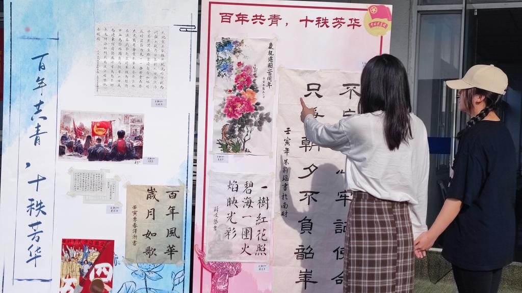 “吾辈当自强,不负前人意”“五星红旗的星光永远照亮着我们前行的路,青年定不负时代”“在无穷的远方追寻盛世的荣光,在灿烂的年华活出青春的模样”……字里行间写满了青年学生自强不息、厚德笃行、实践报国的决心,每一幅画作都蕴藏着深刻的寓意,展现了当代青年的昂扬斗志。