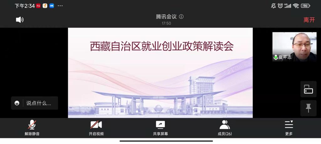 西藏自治区拉萨市人力资源和社会保障局高校中心主任夏平志就西藏自治区就业创业政策作详细解读。他针对如何理解西藏籍高校毕业生、哪些人员可以申领西藏自治区出台的高校毕业生就业补贴、在党政机关或事业单位就业的能否申领市场就业补贴等24个问题进行了详细介绍。他强调,申请西藏高校毕业生就业创业补贴需要满足签订3年以上劳动合同并缴纳社保等条件,他就网上申报补贴的方式途径进行现场指导。解读会中,与会学生就自己关心的就业创业相关问题和与会老师进行了深入交流。同学们纷纷表示,通过此次解读会,自己对西藏籍高校毕业生就业创业政策有了更深入的了解。