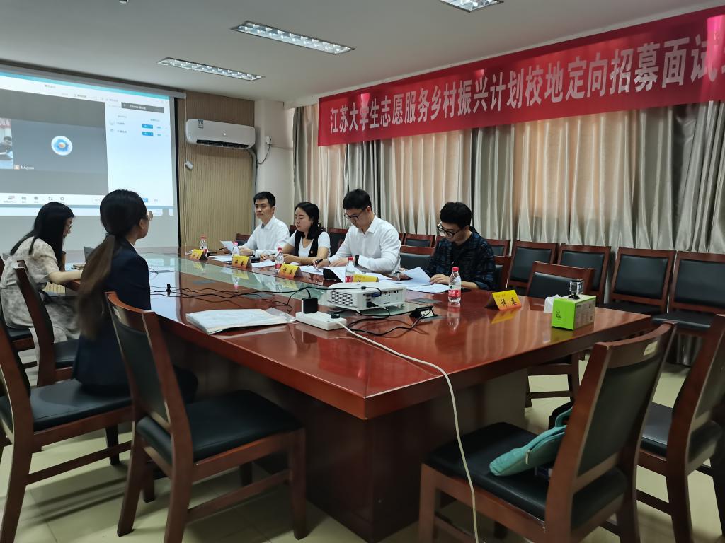 自乡村振兴计划校地定向招募工作启动以来,经公开招募、自愿报名、组织推荐,共有68名同学进入面试环节。根据疫情防控要求,面试采用线上线下相结合的形式进行,包括自我介绍、问辩等环节。评委们对同学们的职业生涯规划、志愿服务初衷、语言表达能力、新闻写作能力、意志品质精神等进行全面了解,对志愿者候选人参加志愿服务工作的奉献精神表示充分肯定,并对同学们的面试表现提出建议。