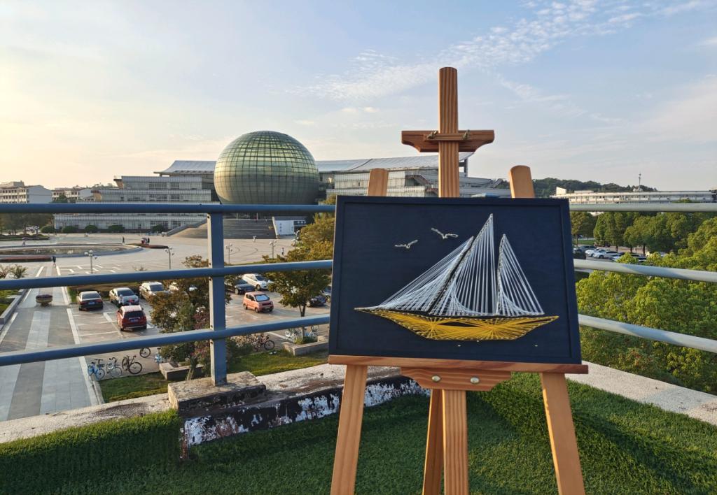 巧手妙思庆华诞。在木板上勾勒好帆船的位置,嵌入金色的钉子、绕上金银的细线,船只与海鸥相伴的景象生动地展现在眼前,国际经贸学院的同学们选择以“一帆风顺”为主题,制作了一幅钉子绕线画,将对祖国的美好祝福融入一钉一线。船只启航、海鸥飞翔,寓意着没有什么风雨波折能阻挡中国前进的坚定步伐,中国将乘风破浪,引领世界潮流。同学们以自身形象制作情景立牌,表达对祖国的热爱。一组同学绘制立牌,另一组同学细心专注地折纸,片缕彩纸化作手中可持的一轮弯月,闪耀的红星跃然于弯月之上。将弯月点缀在立牌周围,形成了一幅立体画,象征着青年人敢上九天揽月的豪情壮志。一根红绳,三缠两绕,将绳头在一个又一个绳结中来回穿梭……应用数学学院的同学们将一腔爱国热情化作慧心巧思融进一件件手工作品中。经济学院研究生“助飞志愿者小分队”在辅导员带领下来到栖霞区钱洁康复中心,为康复中心的小朋友们送去儿童牛奶、蛋糕、糖果等食品,并指导小朋友们一起制作爱国主题的手工贴图,表达对祖国的热爱。经济学院举办“盛世华诞,共织愿景”主题活动,活动通过制作国庆主题手工、爱国主题讨论等形式表达对祖国的祝福,展现了深厚的爱国热忱和向上的青春风貌。
