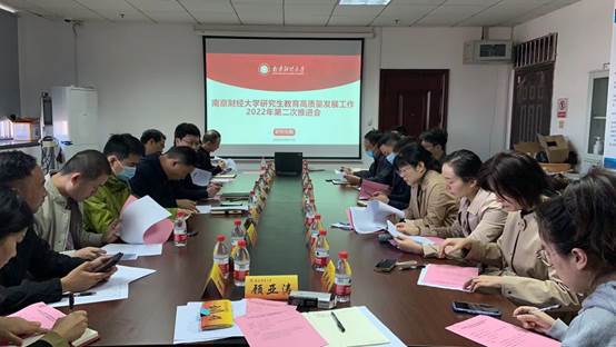 杜修立副院长汇报了今年以来学校研究生高质量发展情况,分析了未来面临的工作形势。他表示,今年以来学校研究生高质量发展总体情况较好,特别是部分指标取得了明显提升。但依然面临着创新发展意识不强、上下协同机制不畅、持续发展动能不足等问题。他建议各学院通过系统推进,持续积蓄发展动能、积极寻找工作思路,通过主动作为切实破解前进难题。研究生院培养管理科科长顾亚涛汇报了近期研究生高质量发展的具体工作安排,包括研究生工作站和产业教授验收考核、校和省两级优质教学资源建设等。