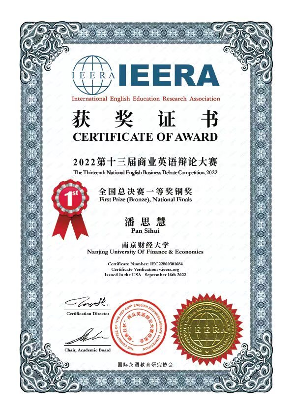 外国语学院潘思慧等获第十三届“高教社杯”商业英语辩论大赛全国总决赛一等奖铜奖